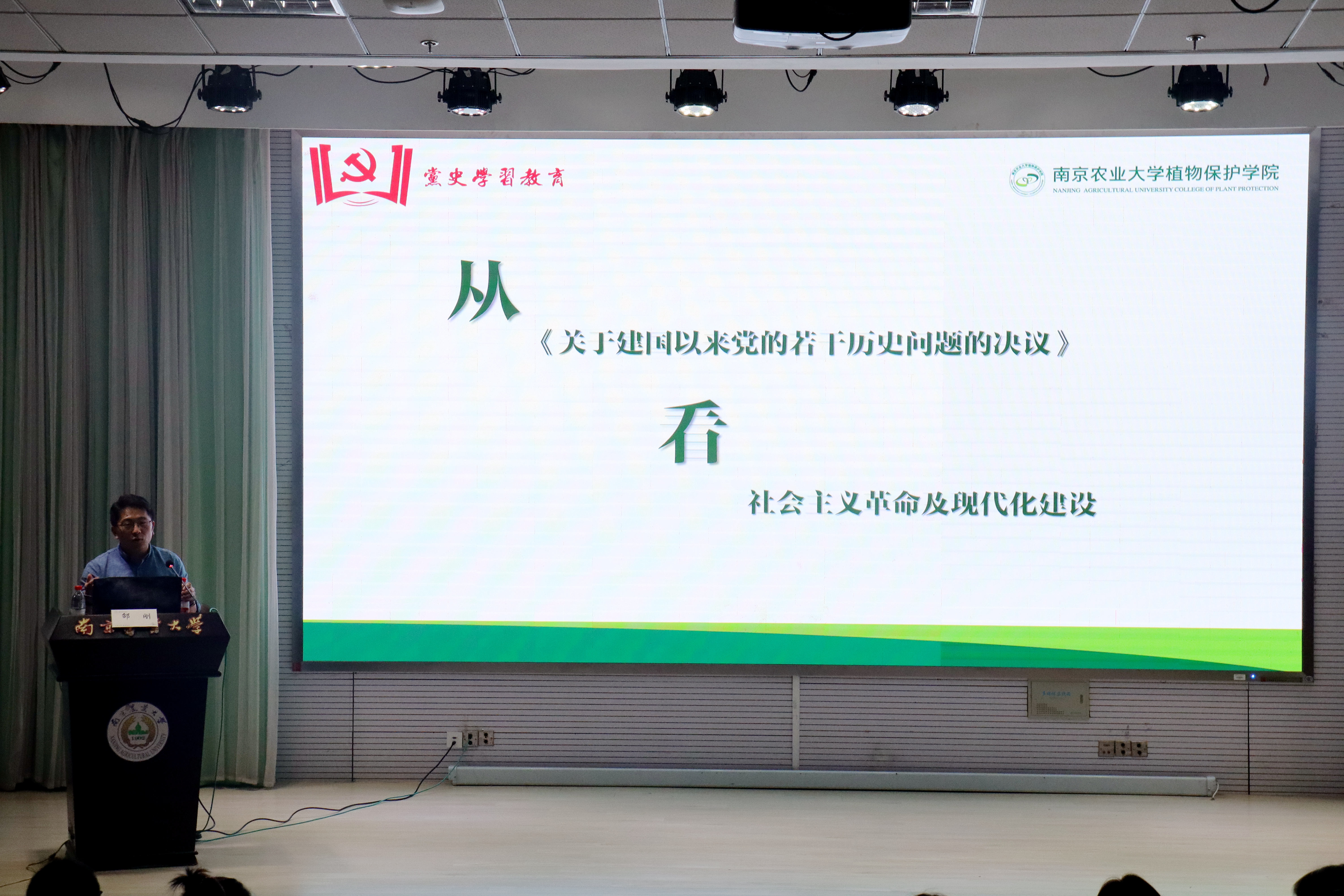 党史学习教育书记专题党课在教四楼报告厅开讲,学院党委书记邵刚作《从<关于建国以来党的若干历史问题的决议>看社会主义革命及现代化建设》专题报告。学院240余名师生党员聆听报告。