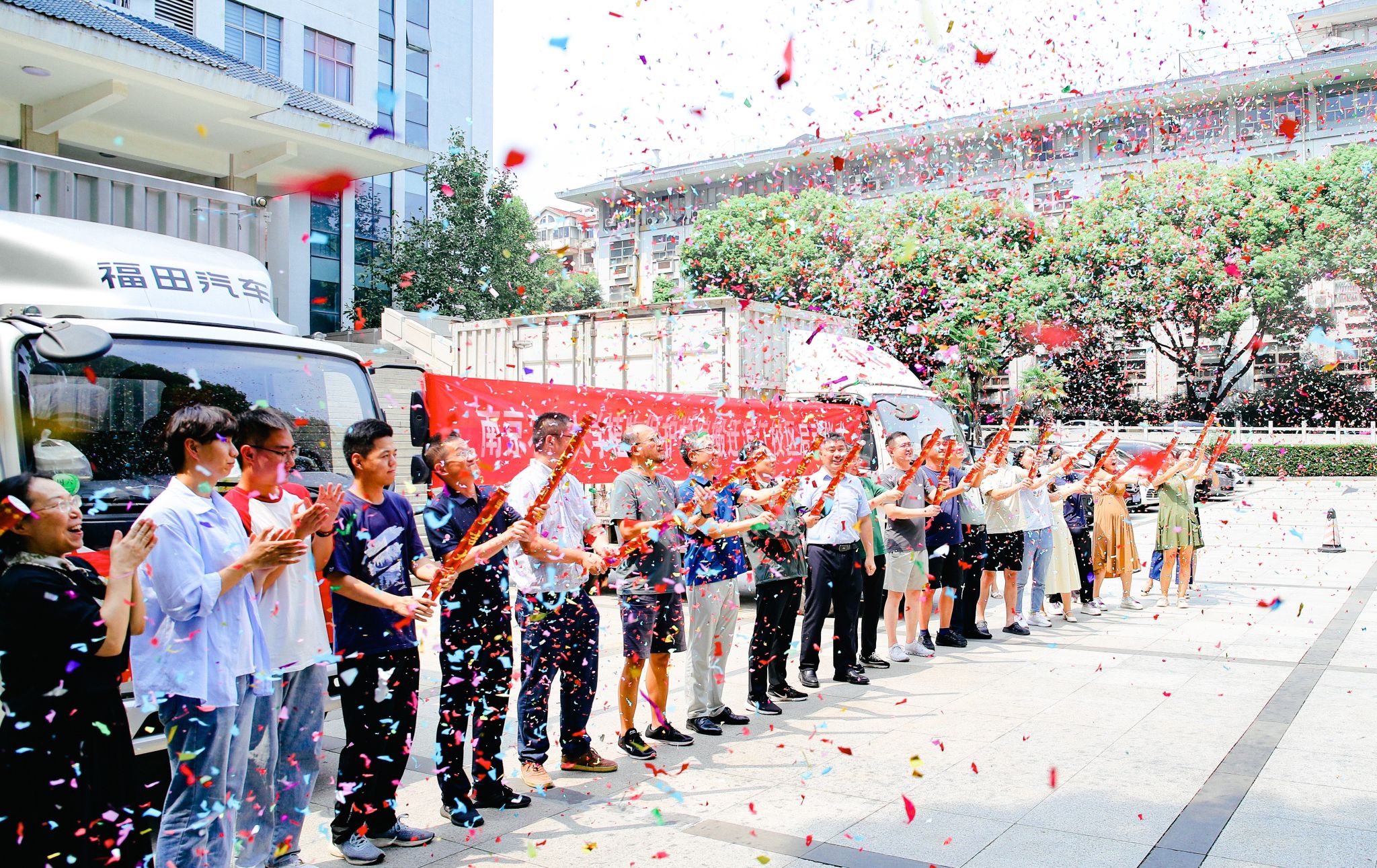 搬迁滨江校区工作正式启动。在礼花和欢呼声中,满载货物的车辆缓缓驶出,驶向滨江校区,奔赴新的征程。