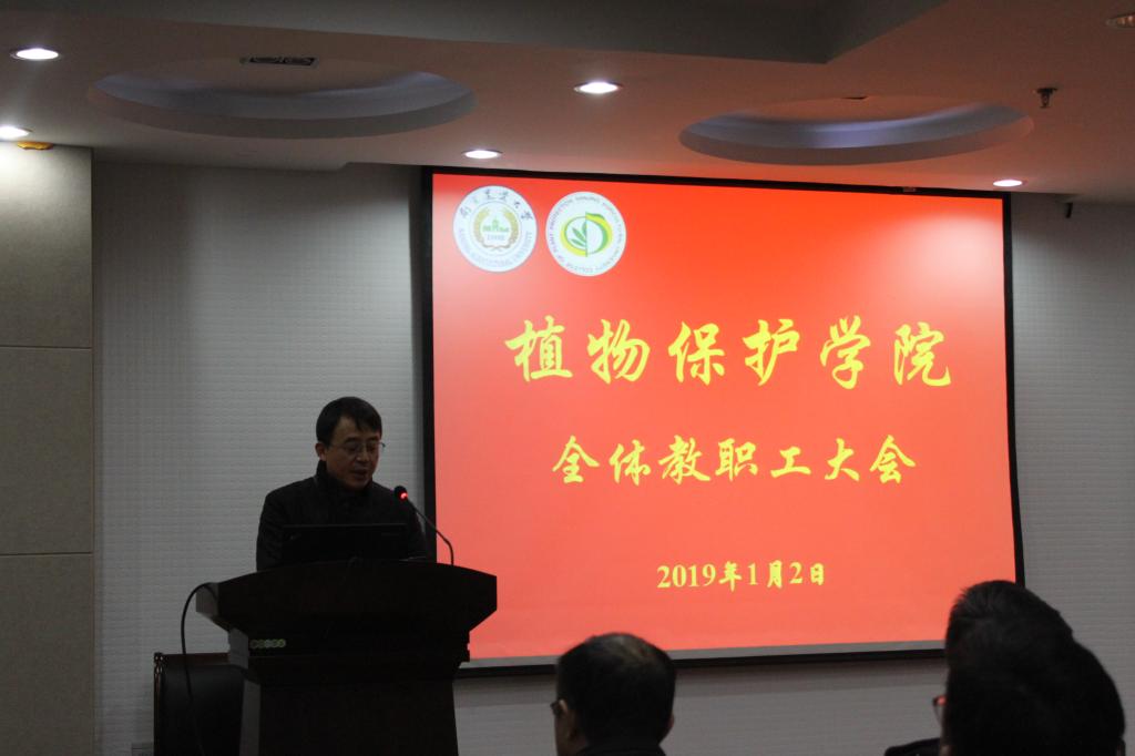 植保学院院长王源超作欢迎发言,他感谢学校党委和组织部一直以来对学院工作的关心和支持,感谢上一任书记吴益东的付出与奉献,并期待新领导班子在后续工作中,团结协作,再创更大辉煌。