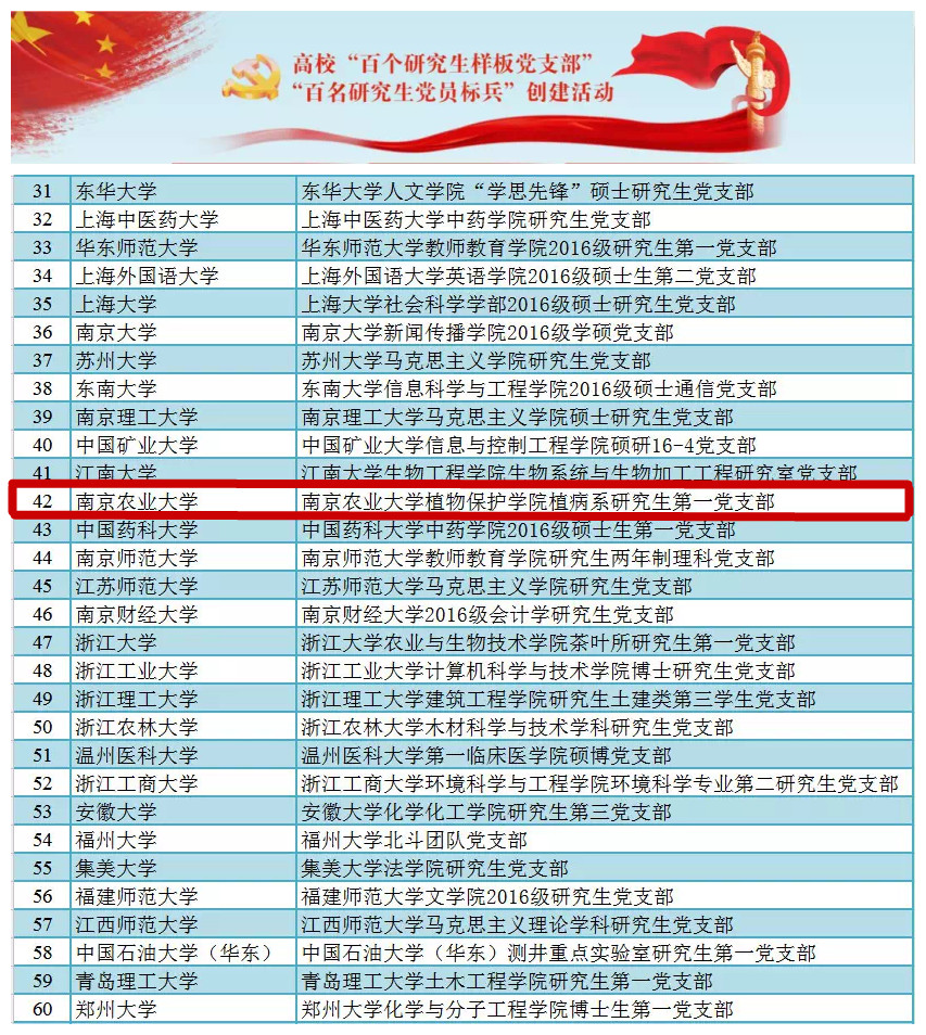 植病系研究生第一党支部入选全国高校“百个研究生样板党支部”。