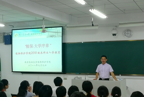 在教学楼C203启动了以“植保·大学序章”为主题的2018级本科生入学教育。在大学生活的第一天,2018级的新生们认真聆听学院领导老师的教诲,获益匪浅。