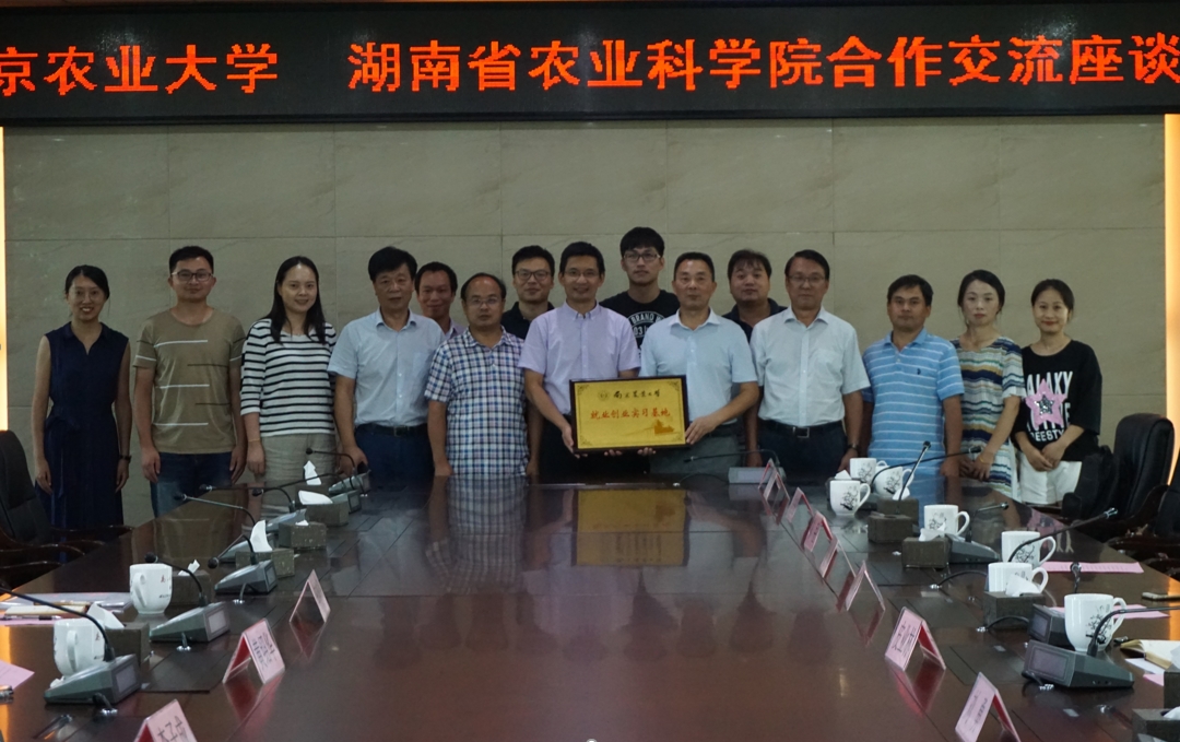 党委副书记黄绍华、团委书记李艳丹、研究生辅导员李子成一行3人,赴湖南走访用人单位,与湖南省农业科学院、广东中迅农科股份有限公司座谈交流,并举行了“就业创业实习基地”签约授牌仪式。