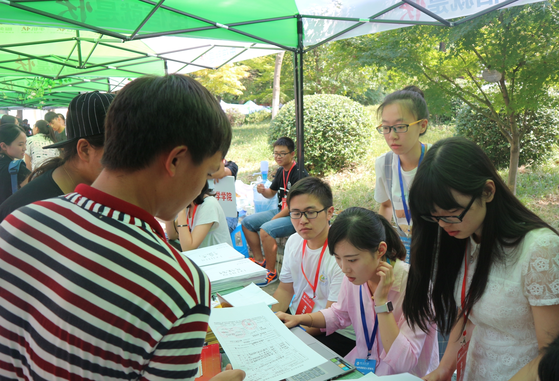 校园内无处不在的植保院志愿者,虽然已是满头大汗,但大家的激情却有增无减。他们面带微笑,高举指示牌,为新生及家长指引方向,为他们卸下沉甸甸的行李,缓解舟车劳顿的疲惫。