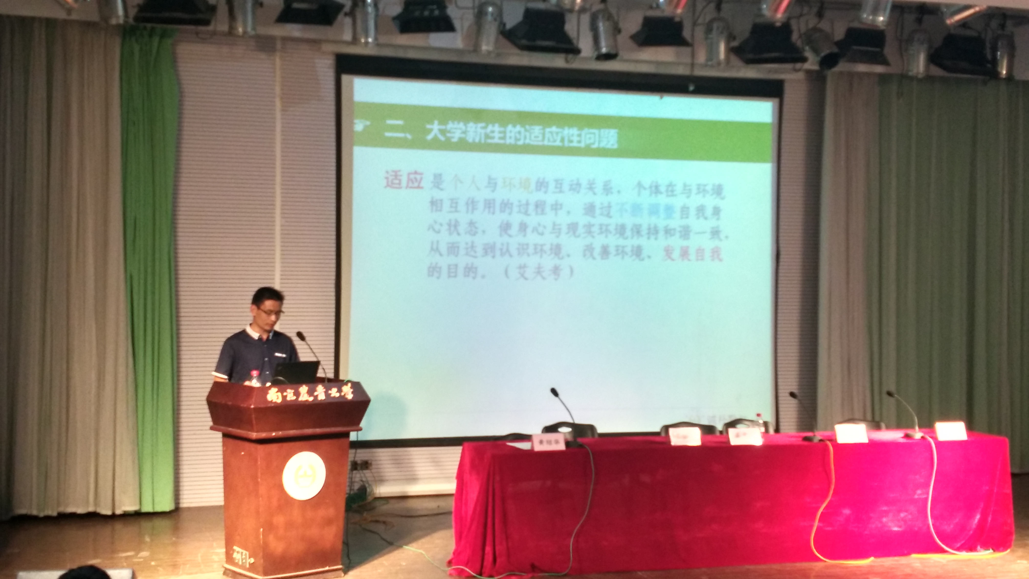 9月21日下午四点,中文av 2015级新生入学教育大会在教四楼报告厅顺利举行。副院长高学文,昆虫系系主任王备新教授、农药系系主任叶永浩教授和植病系副系主任窦道教授龙出席大会,院党委副书记黄绍华担当主持人。 会上,高学文围绕植保专业的院系设置、师资力量以及科研基础等方面进行了框架性的介绍,并分别就科研和教学两个方面总结了植保学院的成果。 大四学生代表裘雯婷巧妙取用自己名字的谐音“求,稳,挺”三个字分享了自己在大学的学习生活体会,希望新生们能懂得求索、稳重和坚挺。 三大教授依次从发展历史、学科实力以及科研成果介绍自己所在学科,让新生对本院学科有个大致了解,方便其提前考虑自己将来的学习方向。 随后,黄绍华对新生进行适应性教育。他从大学生活特点出发,给新生们支招,告诉他们如何解决在大学适应期中遇到的问题,并针对学习、生活以及人际关系三个方面进行详尽介绍。他希望同学们在大学这块追求理想的净土上努力耕耘,在四年时光中掌握专业技能,塑造优秀人格。