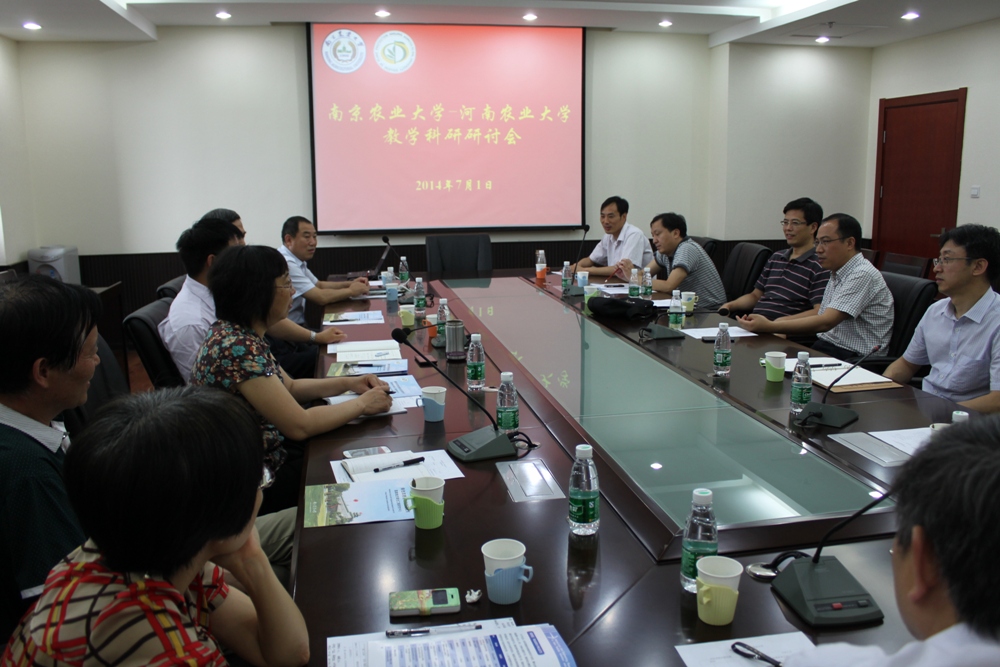 院长王源超教授在理科楼接待了代表团,书记吴益东教授主持召开了“南京农业大学—河南农业大学教学科研研讨会”,并介绍了中文av