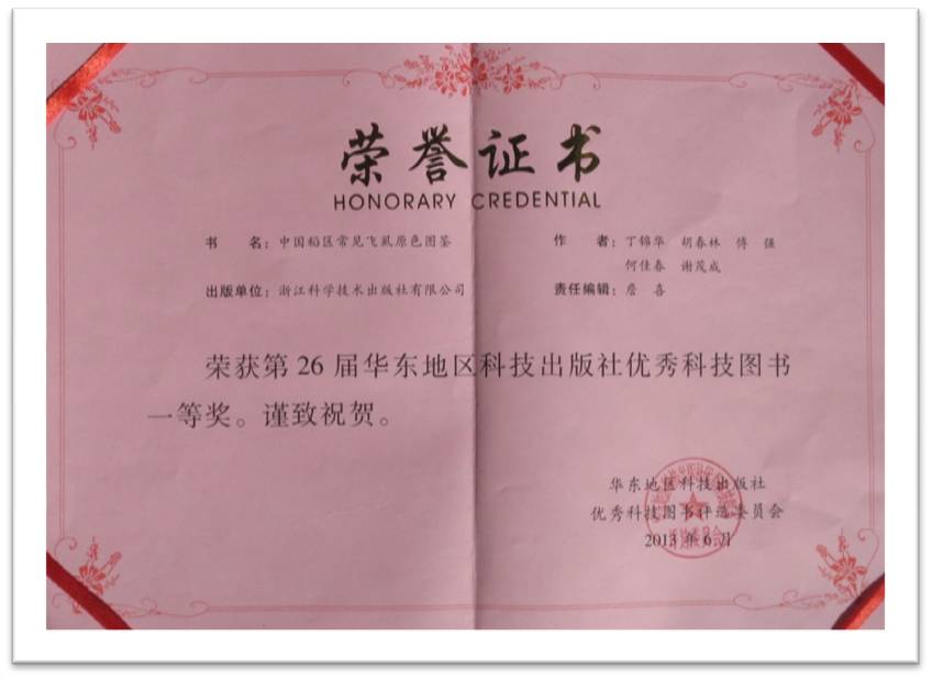 日前获知,《中国稻区常见飞虱原色图鉴》荣获第26届华东地区科技出版社优秀科技图书一等奖。该书由南京农业大学丁锦华、胡春林,中国水稻研究所傅强、何佳春及广西壮族自治区昭平县农业局谢茂成共同编著,于2012年在浙江科学技术出版社出版,责任编辑詹喜。书中根据多年积累的资料,以文字和图片相结合的形式,记述了我国稻区常见飞虱29属35种,内容系统、精练,图片直观、实用,装帧设计精美,具有较高的学术水平。可供各级植保技术人员和昆虫学研究者参考使用。