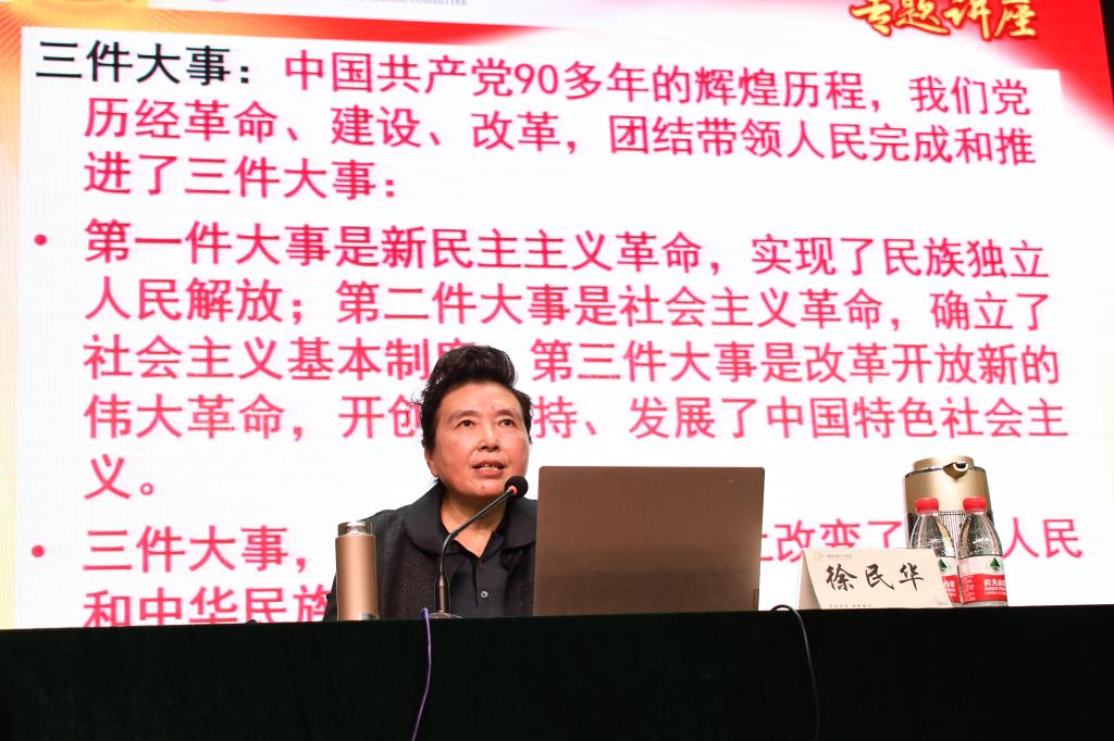中心举行。江苏省委党校二级教授、江苏省委党的十九大精神宣讲团成员徐民华,应邀作题为《新时代中国共产党的历史使命》的专题报告。全体在校师生党员和党建班学员近400人参加学习会。学习会由副院长王兴亮主持。