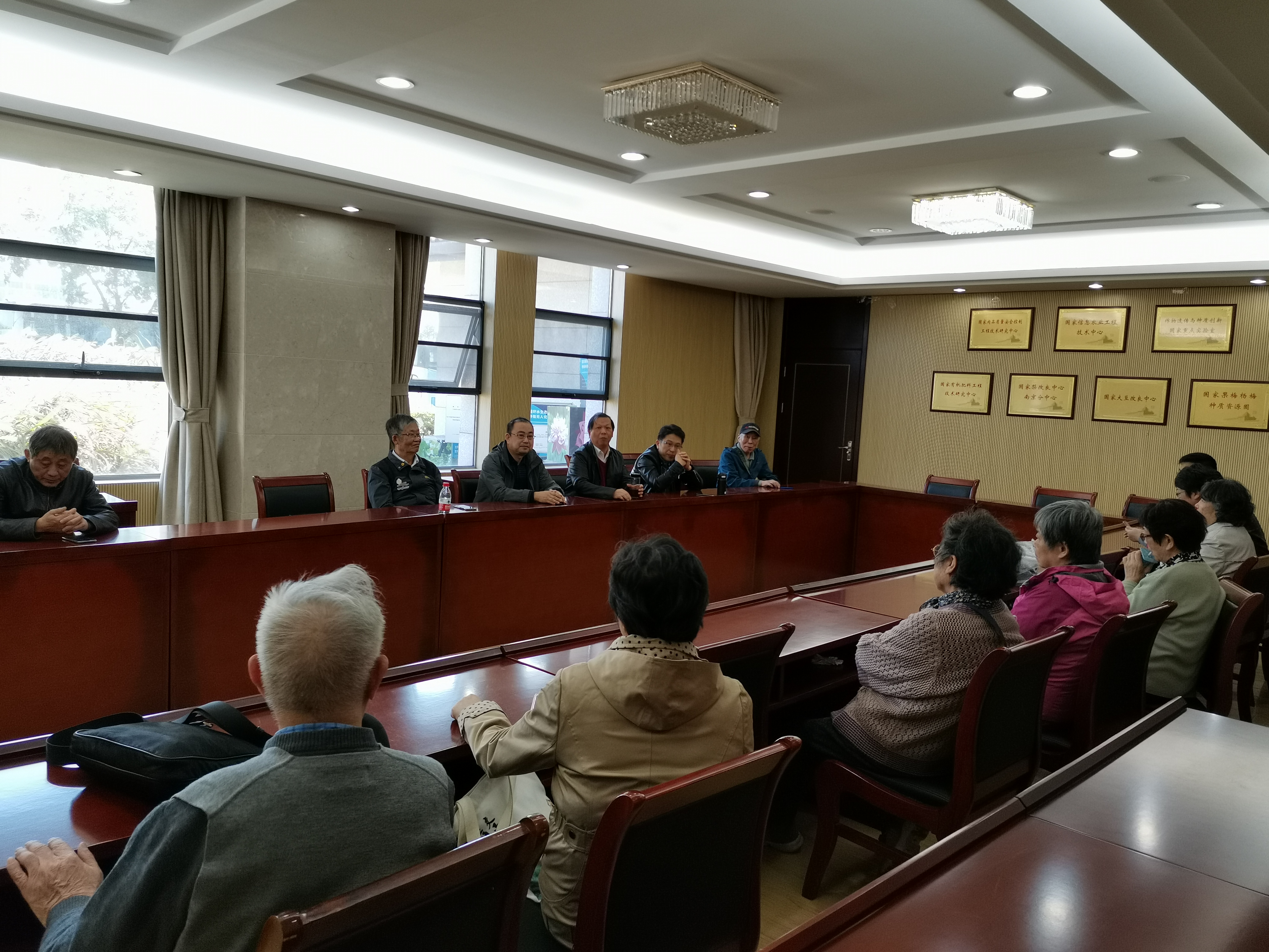 参观完李巷后,驱车来到我校白马科教园区。会上,植保院离退休党支部书记吴耀清主持发言,指出上半年各位老同志宅家抗疫做出的贡献,后面继续配合学校和组织参与各项活动。梁敬东向大家介绍了学校发展规划和这一年的改革情况,表扬了离退休同志的抗疫行动和线上抗疫活动,同时希望老同志们加强学习,要把学习“四史”、《习近平谈治国理政》第三卷和五中全会精神作为重要的政治任务,通过学习,增强 “四个意识”,坚定“四个自信”,做到思想常新,退休不褪色,离岗不离党,用思想武装铸魂引领,用组织建设凝心聚力。