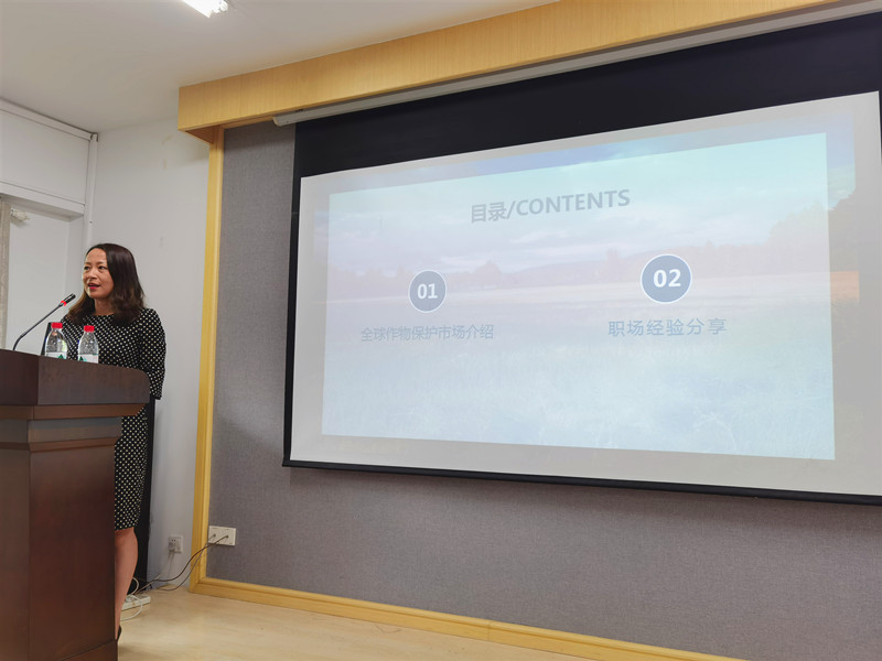 就业创业训练营(企业专场)第三期在校就业指导与服务中心二楼会议室举行。本次活动邀请到中农立华生物科技股份有限公司国际事业部总经理,中红太阳(南京)生物科技有限公司总经理,中国农药工业协会国际贸易委员会副主任、中国农药工业协会国际贸易委员会特约讲师张爱娟女士主讲,作《带你走进全球作物保护市场》的主题分享,来自学院80余名本研学生参与聆听。活动由中文av
