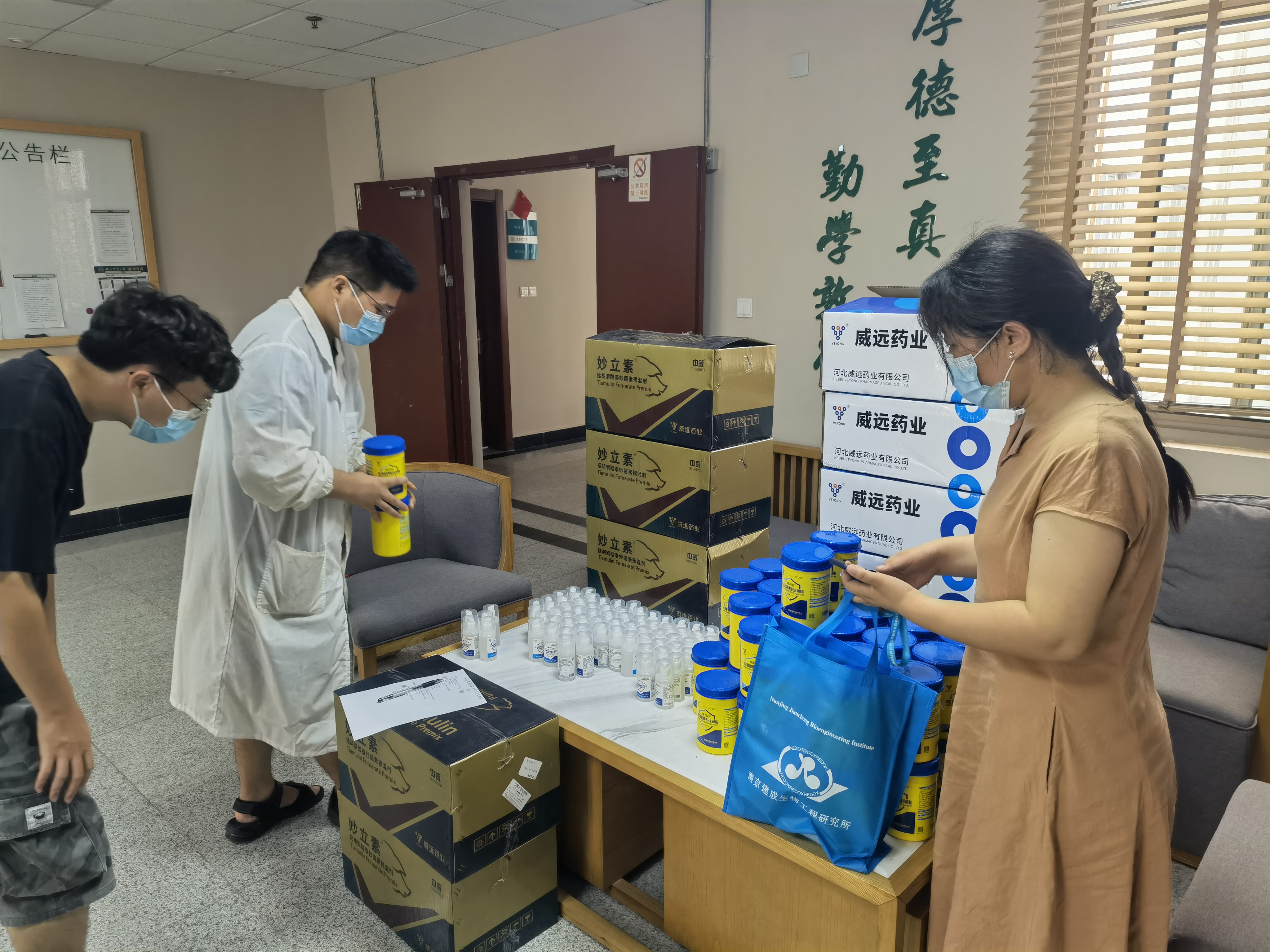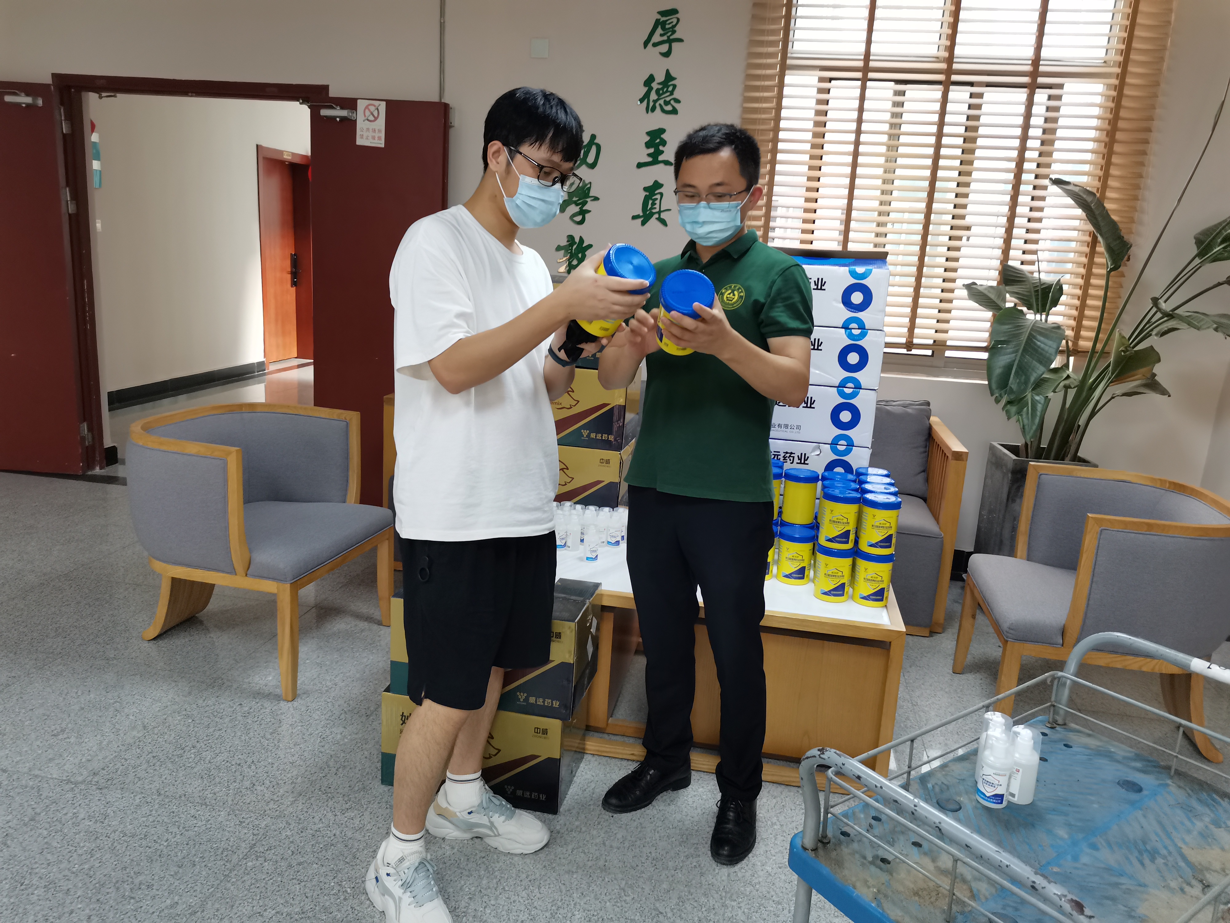 8月2日,为支援南京农业大学中文av 疫情防控工作,解决学院内各实验室、办公室在消杀用品方面的后顾之忧,利民控股集团股份有限公司向中文av 捐助500瓶消毒液和60桶消毒粉。在此,中文av 对利民控股集团的爱心捐助致以诚挚的谢意!