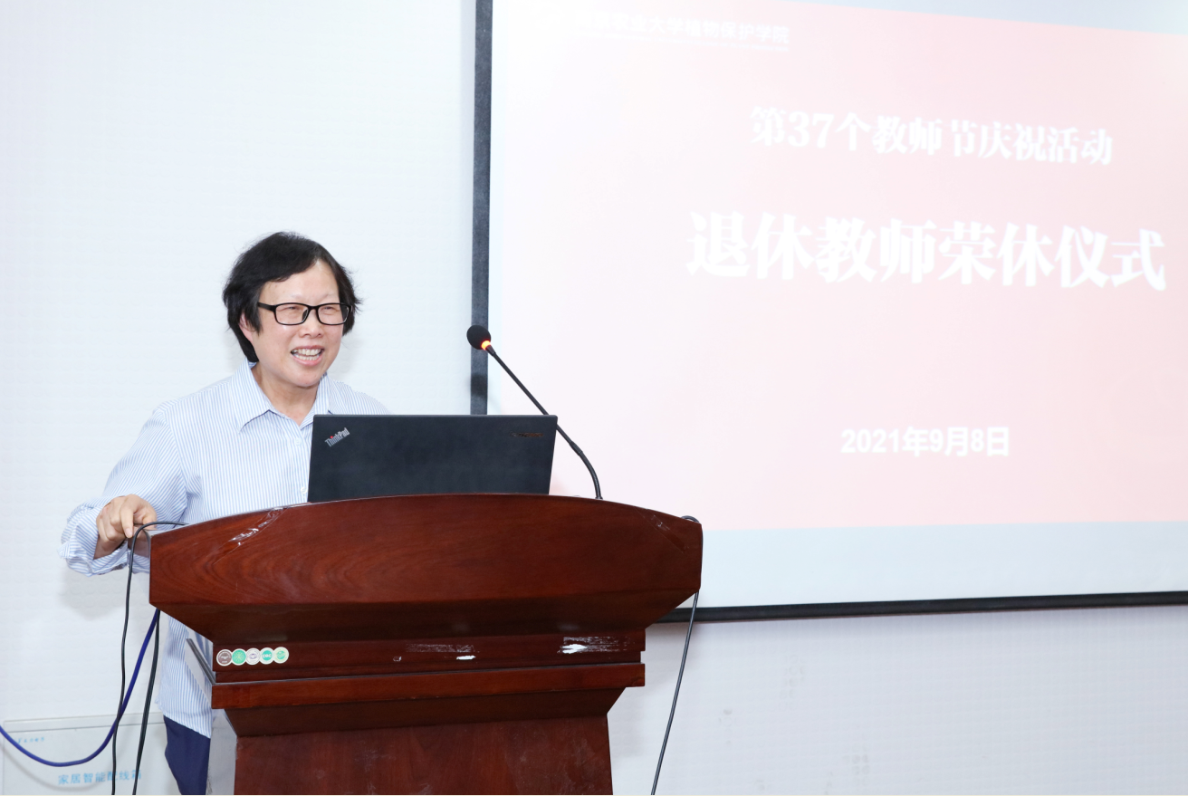 两位退休教师分别回顾了自己在植保学院工作经历以及与同事相处的美好回忆,感谢学院领导和老师多年来给予的关心、帮助和相互支持,祝愿植保学院越来越好!从她们动情的话语中,我们感受到她们从教数十载获得的幸福以及今天所有的不舍。感谢我们的老教师为植保学院的事业发展做出的奉献,同时也祝愿我们的荣休教师身体健康,生活幸福。