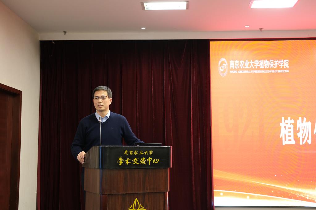 院长张正光做学院年度工作总结。2021年是中国共产党成立100周年,也是南农植物保护学科肇始100周年。学院立足实际,深入学习贯彻习近平新时代中国特色社会主义思想,紧紧围绕立德树人根本任务,加强党的全面领导,把牢办学方向;牢记立德树人初心,深化教育改革创新,提升育人成效;坚持科技自立自强,服务国家战略需求,增强学科实力,不断提高学院师生思想政治水平和强农兴农本领,扎实推进各项工作再上新台阶。本年度学院党委荣获先进基层党组织,1项党建案例入选江苏高校党建工作典型案例100例,王源超入选南京市十大科技之星,胡白石获全省高校优秀共产党员,4位青年教师入选各类青年计划,3位博后入选全国博新计划资助。新增国家自然科学基金31项,发表SCI论文180篇。