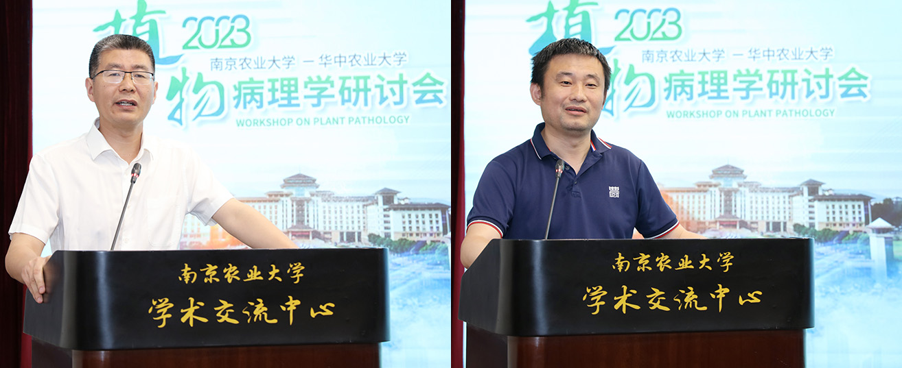 院长张正光分别致开幕辞。南京农业大学植物病理学系系主任陶小荣介绍了植物病理系的发展历史、学科配置以及科研现状。华中农业大学物病理学系系主任谢甲涛展示了华中农业大学植物病理学系在团队建设、教学和科研、社会服务等方面取得的成果。研讨会开幕式由南京农业大学中文av