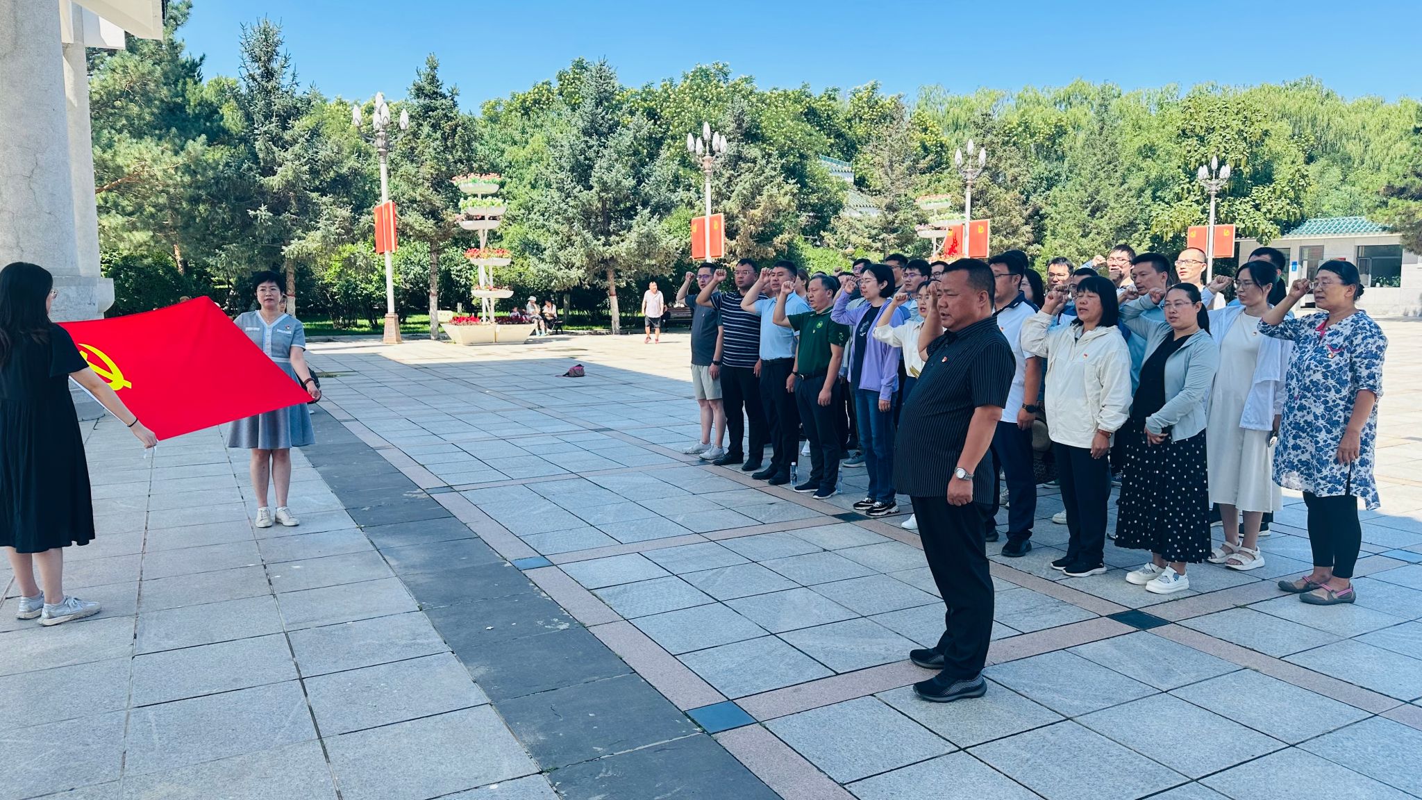 参观结束后,培训班一行面对党旗,庄严宣誓,重温入党誓词,用铮铮誓言表达了为共产主义事业奋斗终身的决心。