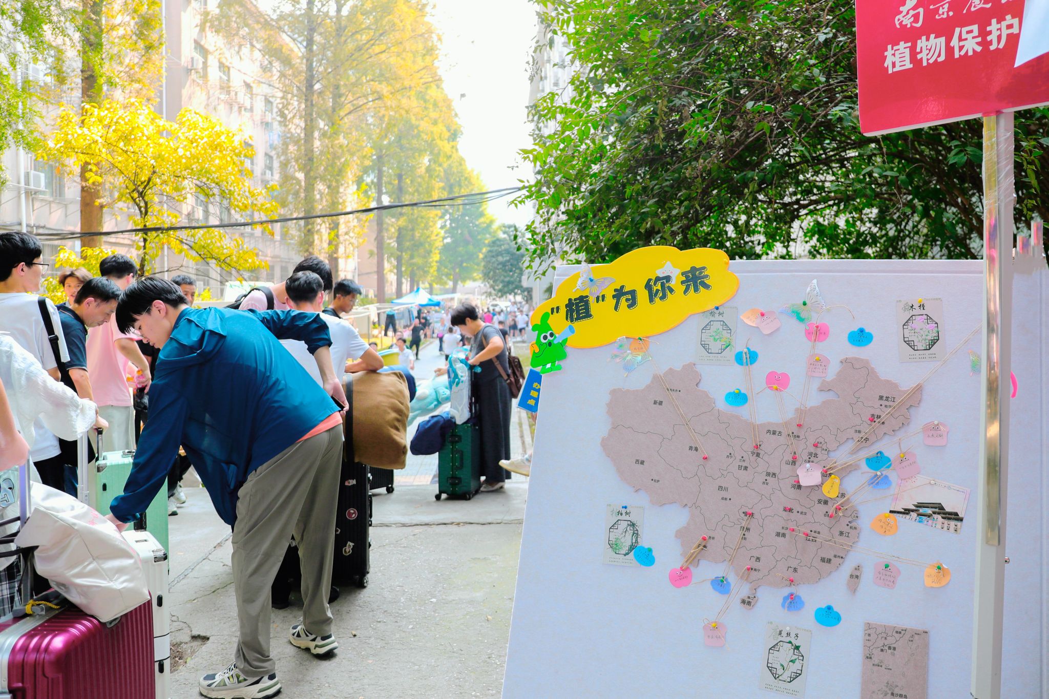 迎新摊位上满是植保院的热情与巧思:“大树”签到牌,一叶一新生,祝福他们在植保的沃土中生根发芽、茁壮成长;特色地图墙,描绘来自天南海北的大家,记录入学时最真挚的成长祈愿;香酥可口的蚕蛹,威武霸气的独角仙,栩栩如生的蝴蝶标本,精美详细的校园植物名录,让新生直观感受植保特色……
