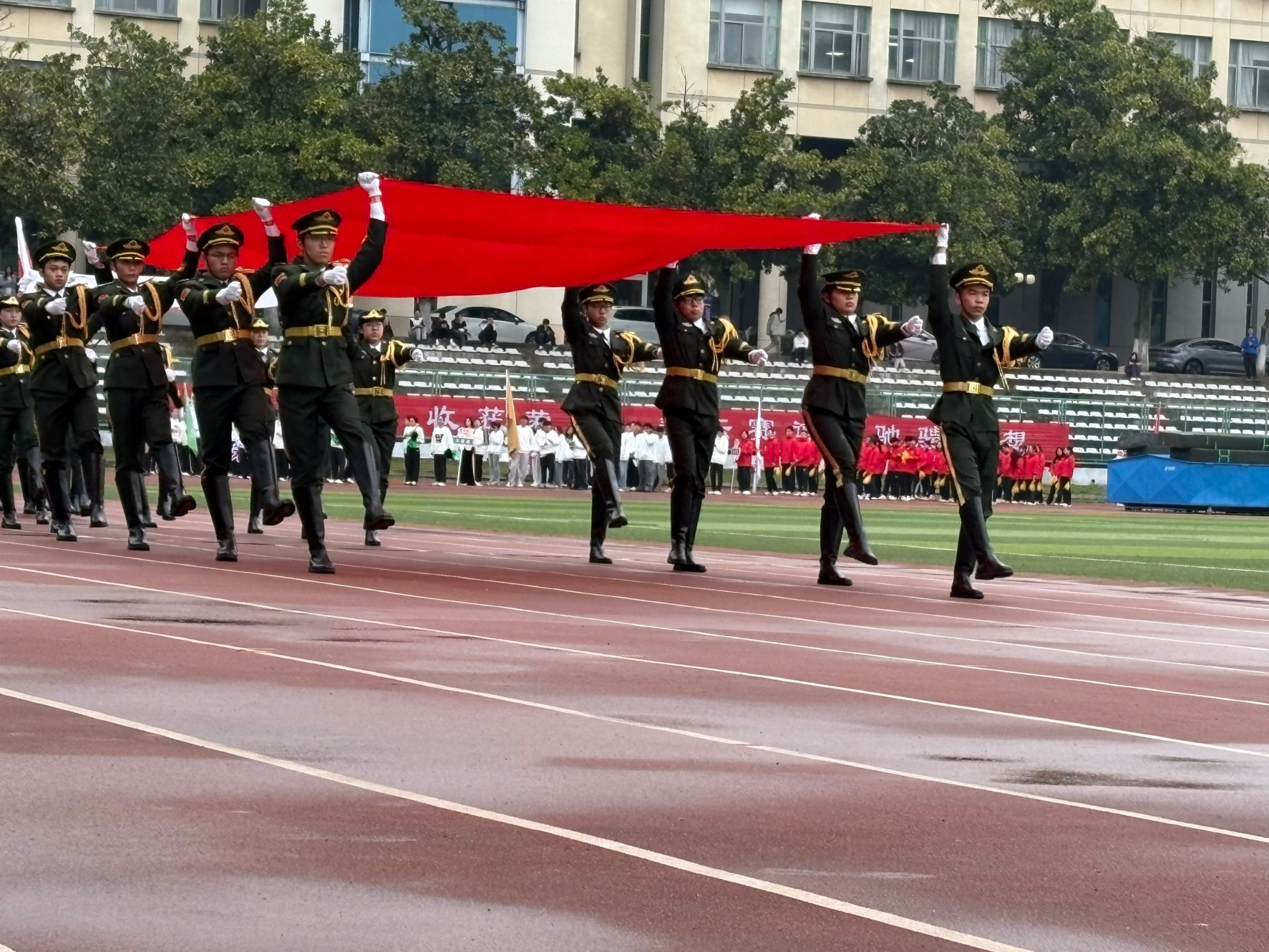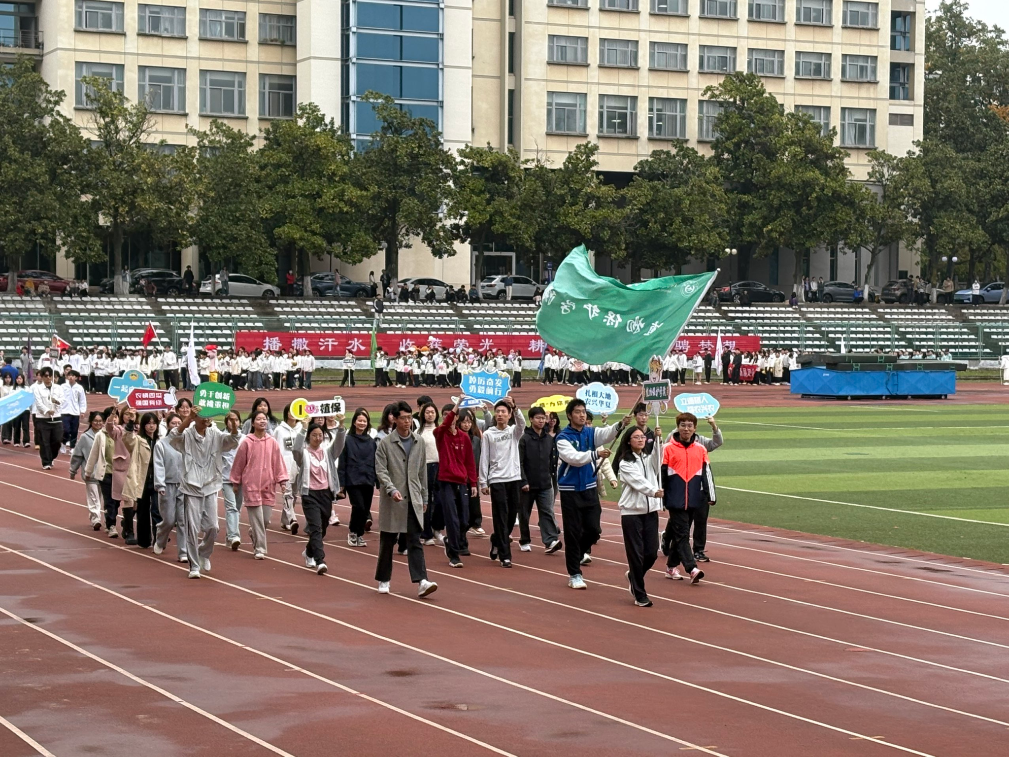入场方阵齐声高呼“护绿有我,赛场拼搏!”,展现出植保青年积极向上的精神风貌,开幕式落幕,比赛正式拉开帷幕,植保学院的运动员们坚韧不拔,勇往直前,在赛场上全力拼搏、超越极限。