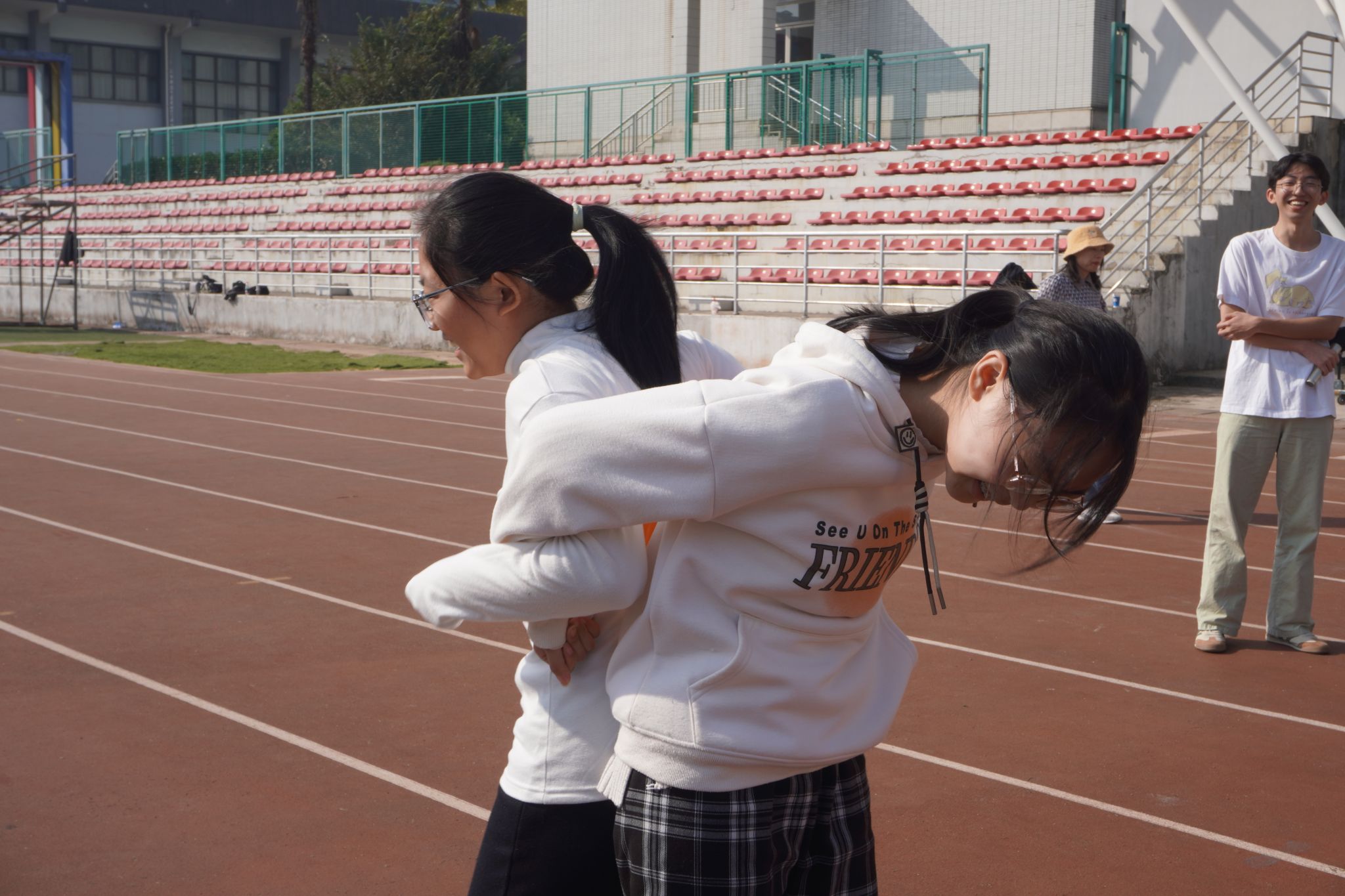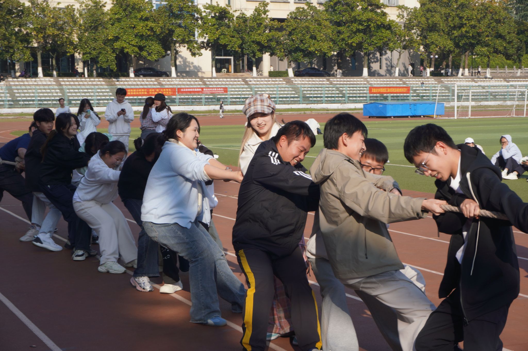赛场上不仅有学子们全力以赴的身影,各学院辅导员与班助们也热情参与其中。运动场上加油声、欢笑声此起彼伏,每一个美好瞬间都被深深印刻在这个秋天,也烙印在每一位同学的青春记忆中。