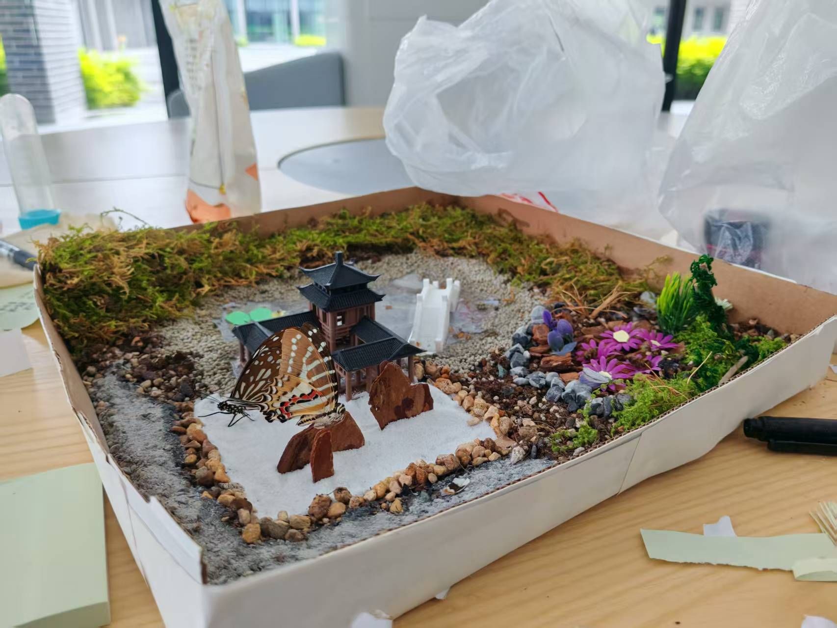 (比赛现场,参赛队伍正在认真制作昆虫标本)