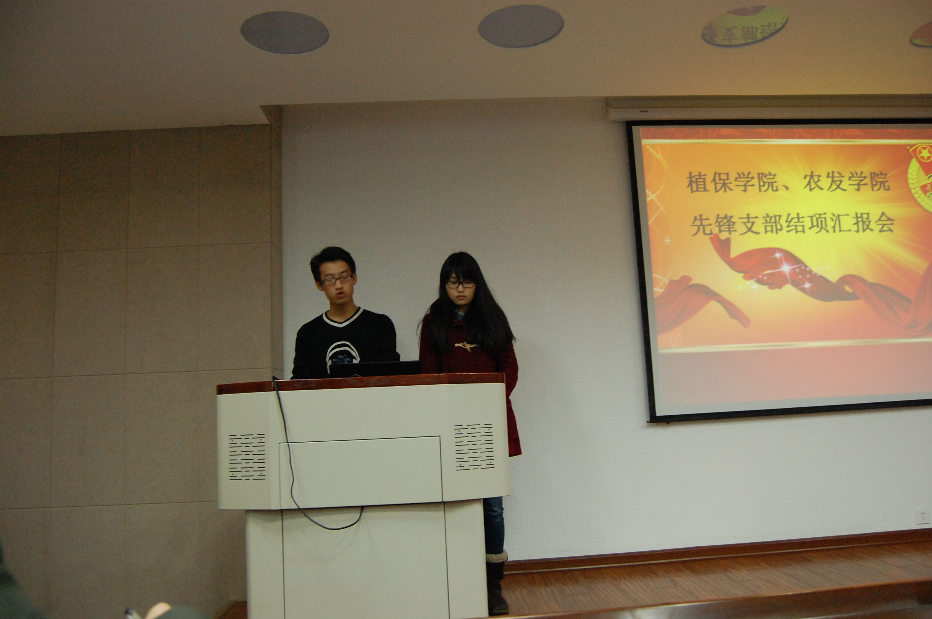 王李锋简要介绍会议流程后,各先锋支部团支书依次上台汇报上学年内支部机制建设、学风建设、文化建设和特色活动的开展情况及活动成果。各支部通过建设和发展各类网络平台,加强班级的对外宣传;通过开展丰富多彩的主题活动,加强内部交流,并形成一种相交而各立,相容而共鸣的有生命的文化底蕴;更通过各类切合支部实际的特色活动,体现支部不一样的精彩。其中,植保121结合班级特色开展的大学生职业生涯规划活动将策划书展示、简历制作及模拟招聘会融合起来,循序渐进,让班级同学有机会切身接触当代就业的客观环境,对他们今后的就业起了很好的指导作用,让人印象深刻。会后,评委根据各支部展示进行评分并点评。