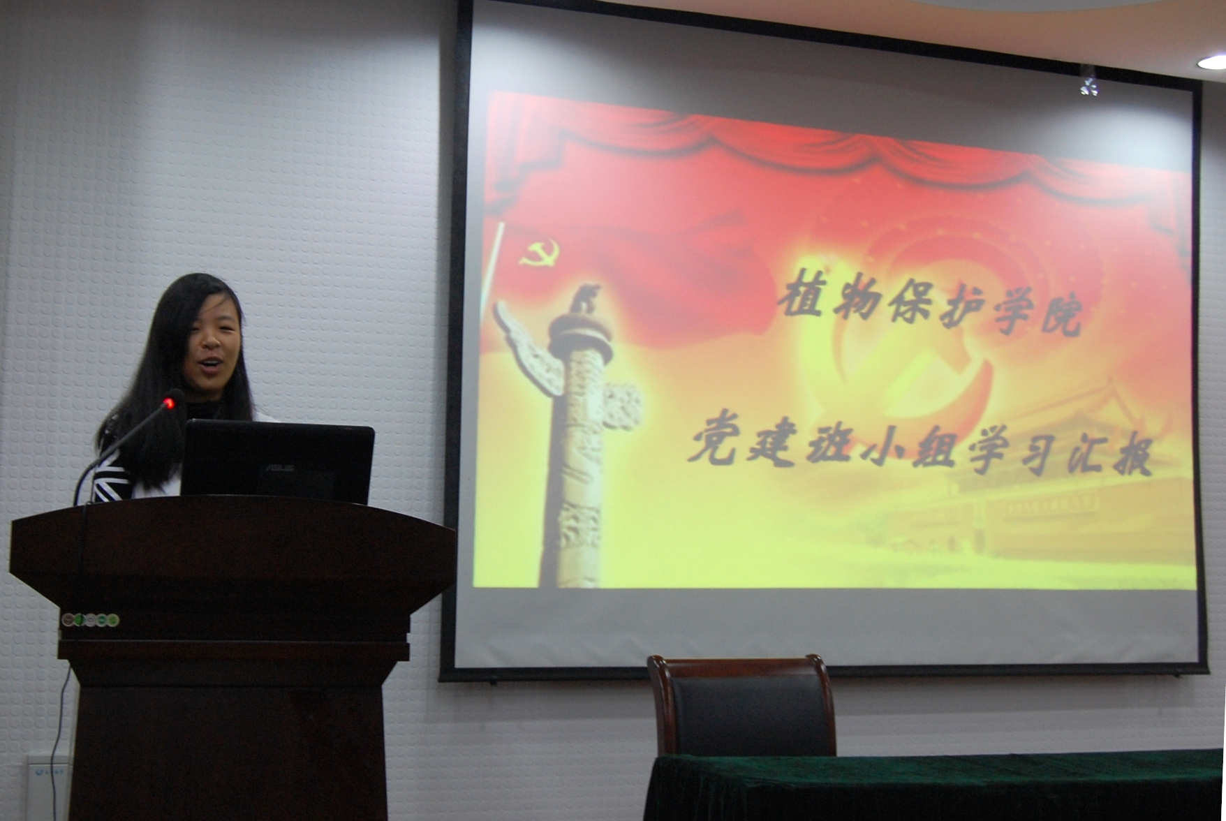 11月7日晚,植保院初级党建班全体学员在理科楼C303顺利完成党章、党史和入党动机的PPT学习汇报,并同时进行PPT制作大赛初赛。院学生会主席刘聪超,组织部部长冯梅,科协技术部副部张洋担任评委,汇报由组织部副部张伊杰主持。