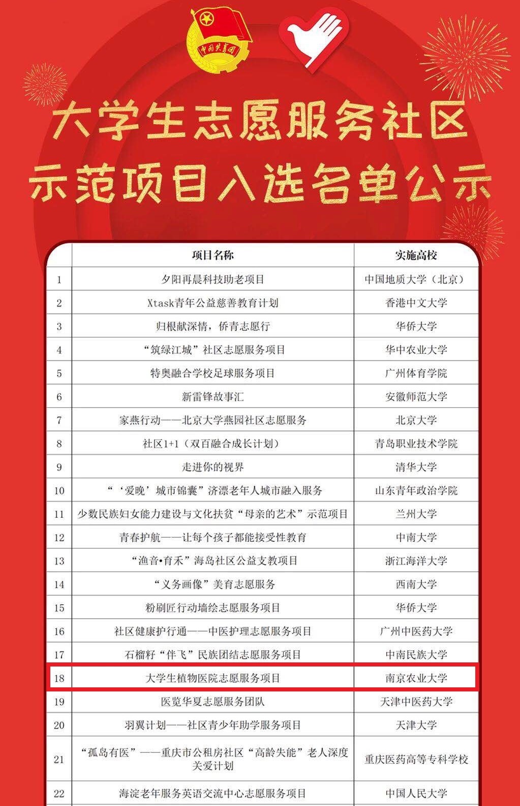 近日,共青团中央公布了2019年大学生志愿服务社区示范项目入选名单,植保院大学生植物医院志愿服务项目成功入选。