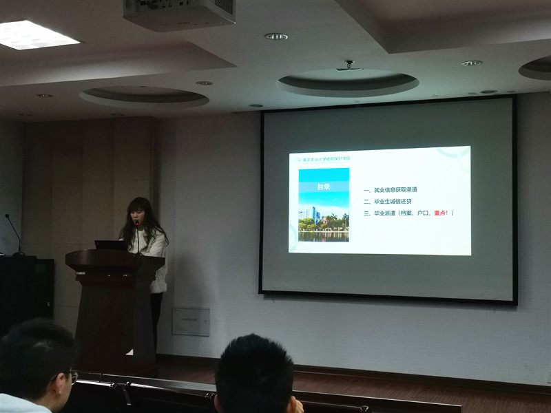 会上,汪越老师推荐了数个就业信息的获取渠道,建议各位意向就业的毕业生对年级QQ群、校就业网、南农微就业公众号发布过的就业信息多加关注。同时提醒申请过助学贷款的毕业生诚信还贷,避免对个人征信产生不良影响。