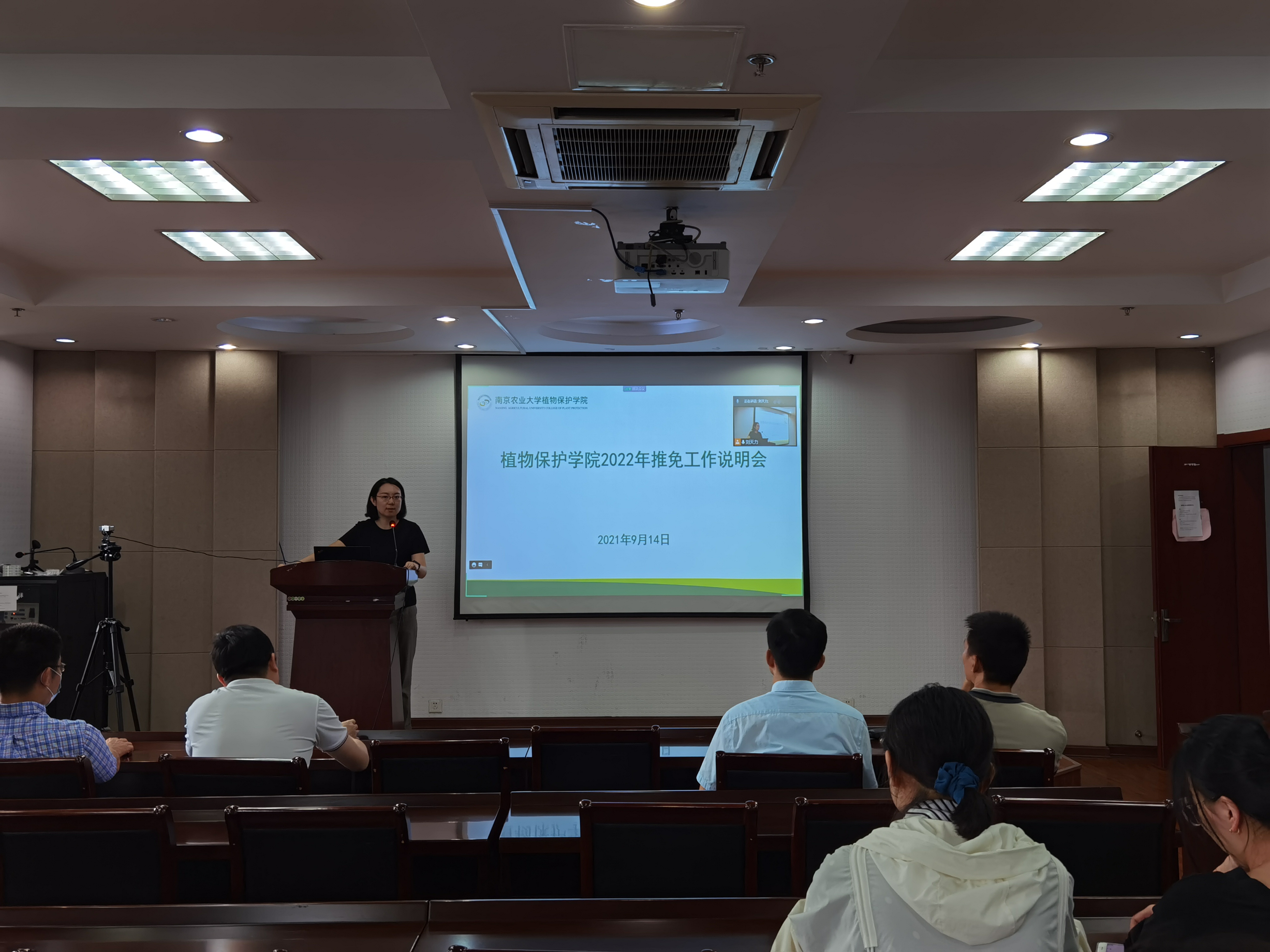 9月14日上午,植保院2022年推免工作说明会在理科楼C303举行。学院院长张正光,副院长叶永浩、王兴亮,农药系学科点长刘泽文,植病系教师代表牛冬冬,本科生辅导员李艳丹和部分意向推免的大四学生参加。会议由学院党委副书记吴智丹主持。