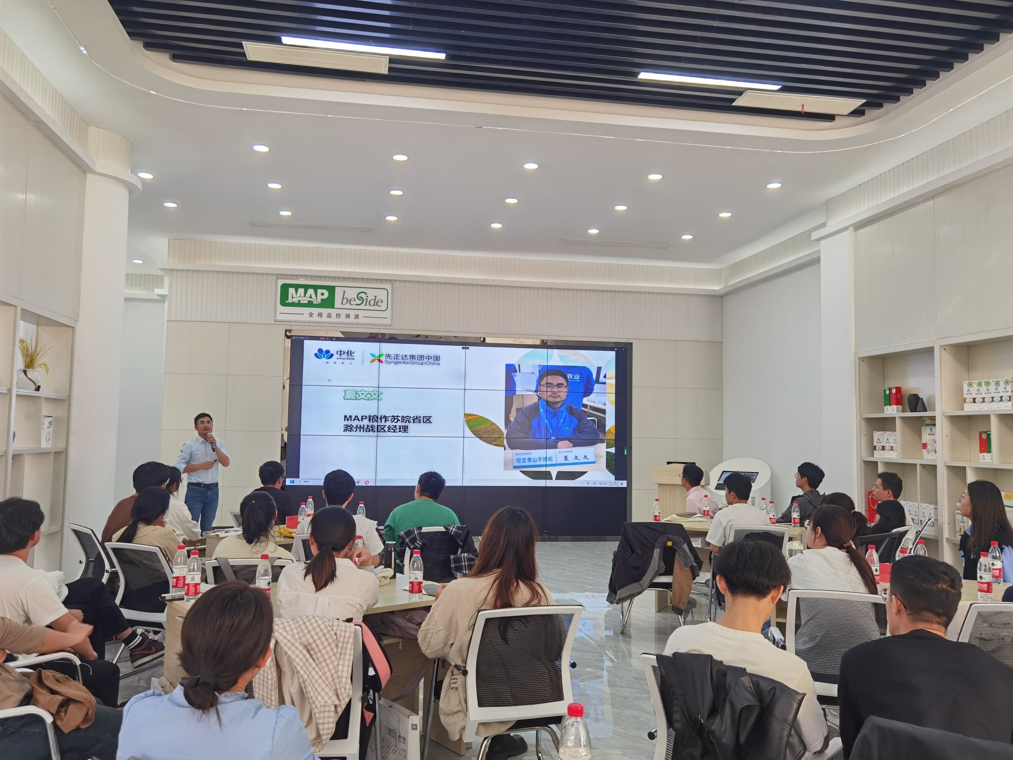 在校企交流环节,MAP与数字农业人力资源部副总监游会静宏观介绍MAP与数字农业的使命、愿景、核心理念及业务模块,鼓励青年学生学农为农、为中国农业现代化贡献智慧和力量。MAP粮作苏皖省区总经理助理李云飞详细介绍MAP BU业务及战略,MAP粮作苏皖省区人力负责人陈默具体介绍公司岗位及人才发展理念。同学们也就校招等问题与公司负责人交流。