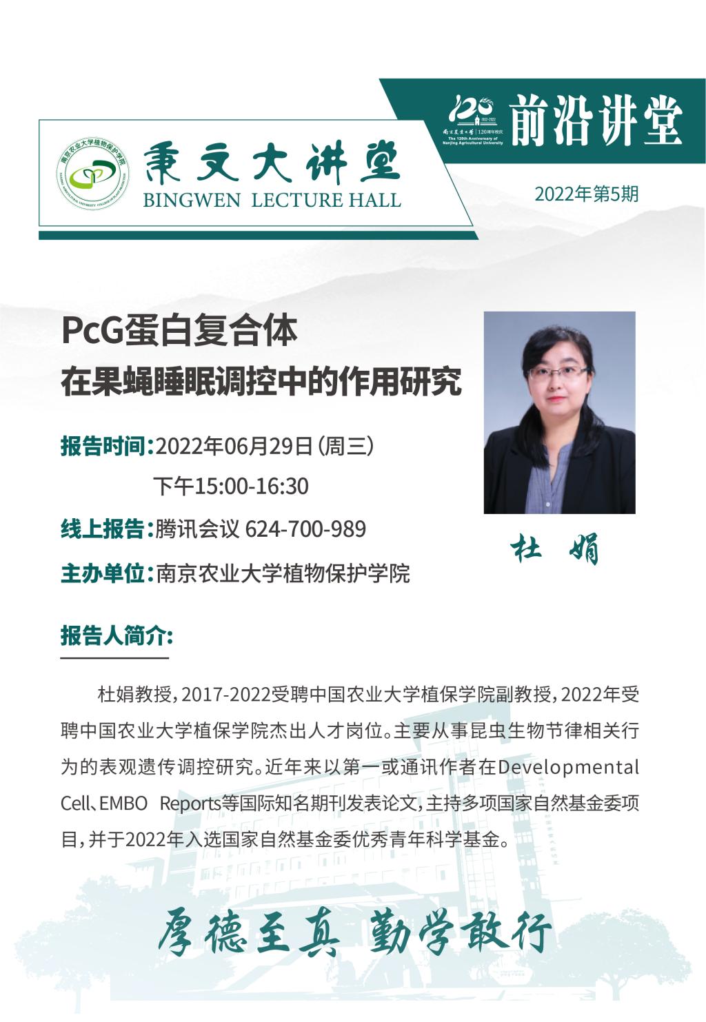 百廿南农-植保学术系列报告:PcG蛋白复合体在果蝇睡眠调控中的作用研究
