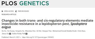 202139日,南京农业大学苏建亚教授团队在知名期刊PLoS Genetics在线刊发了题为 “Changes in both trans- and cis-regulatory elements mediate insecticide resistance in a lepidopteron pest, Spodoptera exigua的研究论文。论文综合解析了甜菜夜蛾对毒死蜱、氯氰菊酯、溴氰菊酯等多种杀虫剂产生抗性的原因,揭示了反式作用因子与顺式调控元件协同调控解毒酶基因组成型表达上调,并介导多药抗性的分子机理。