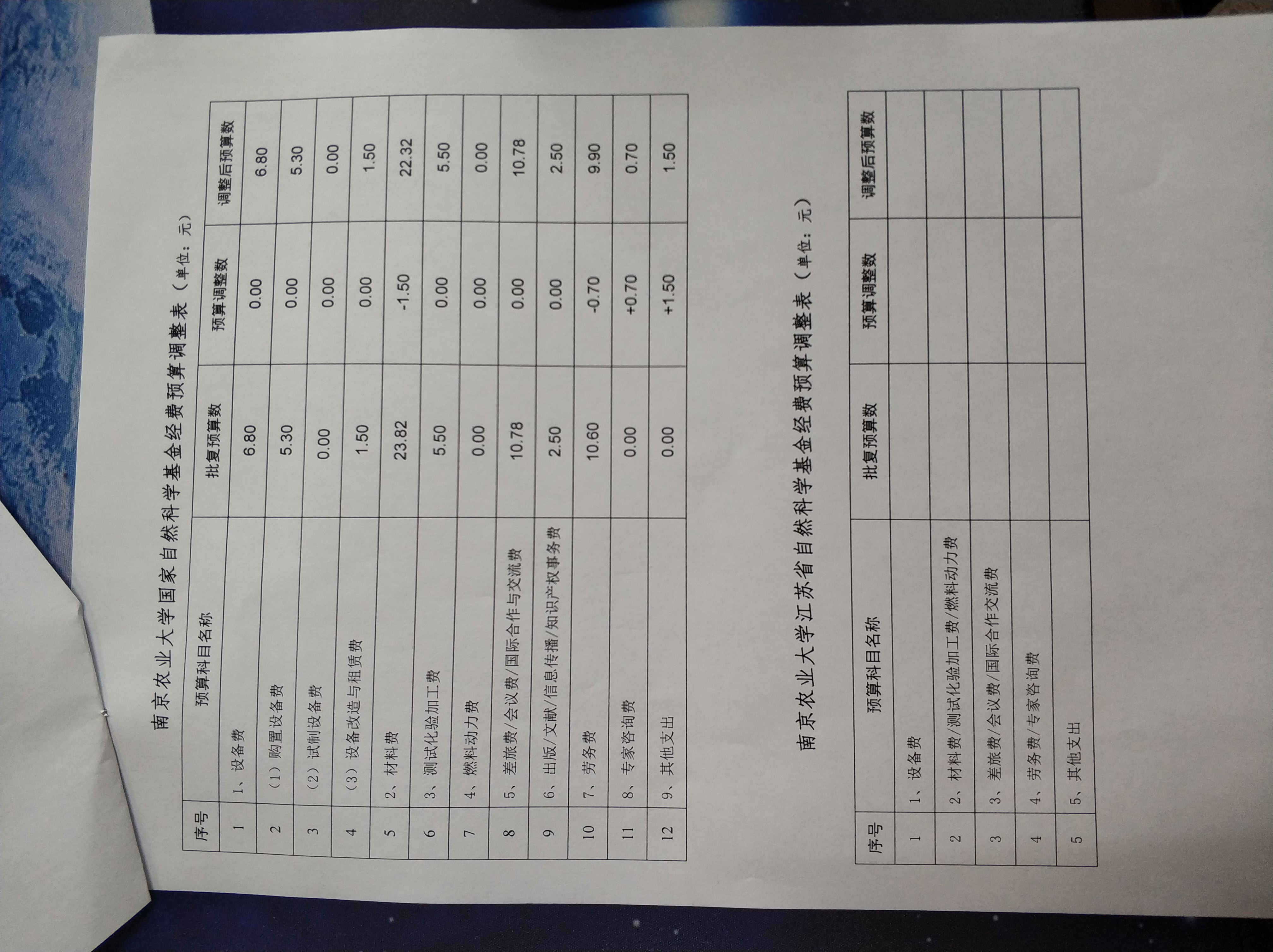 国家自然科学基金“两株芽胞杆菌生物膜互作在番茄青枯病防治中的作用”预算调整