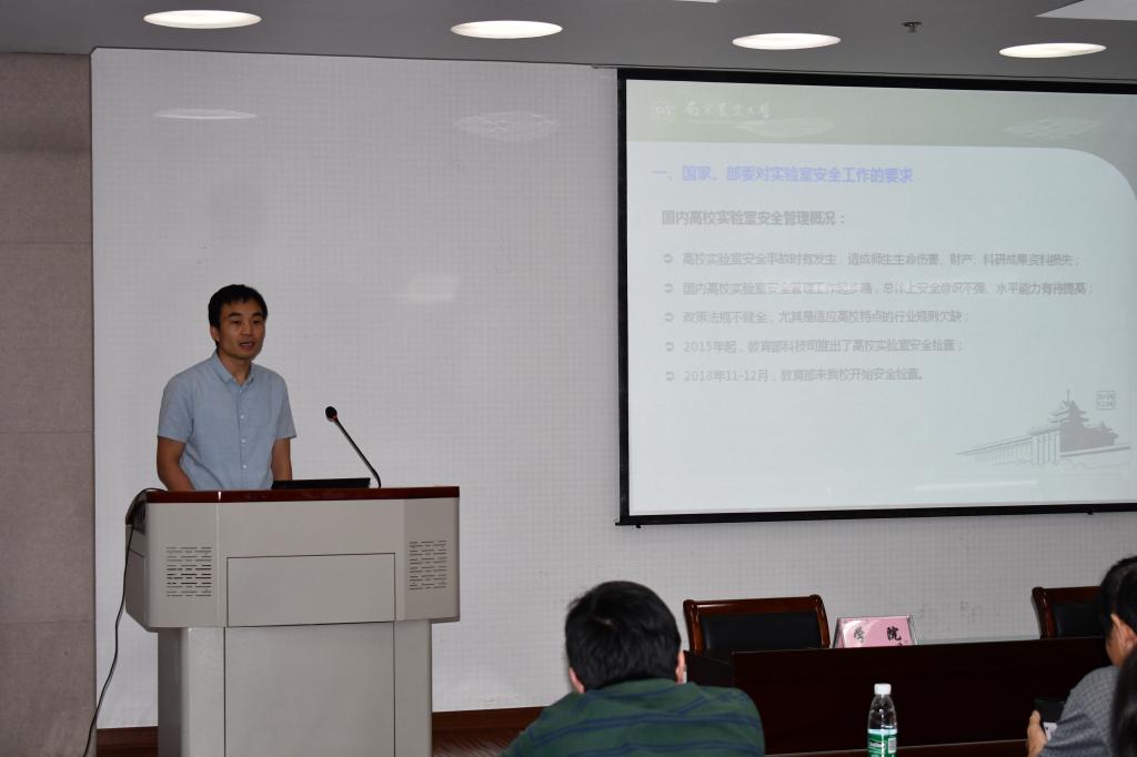 分管学院安全的副院长王兴亮从不同角度汇报了安全工作背景,列举并简要分析了最近几年发生较为严重的安全事故及发生原因;同时汇报了这学期学校和学院的安全检查工作,排查并整改了诸多安全隐患。最后宣读了学校下发的文件—关于印发《南京农业大学实验室安全责任追究办法(试行)》的通知,让各个实验室的负责人和安全员老师进一步意识到自己的责任重于泰山、安全高于一切。